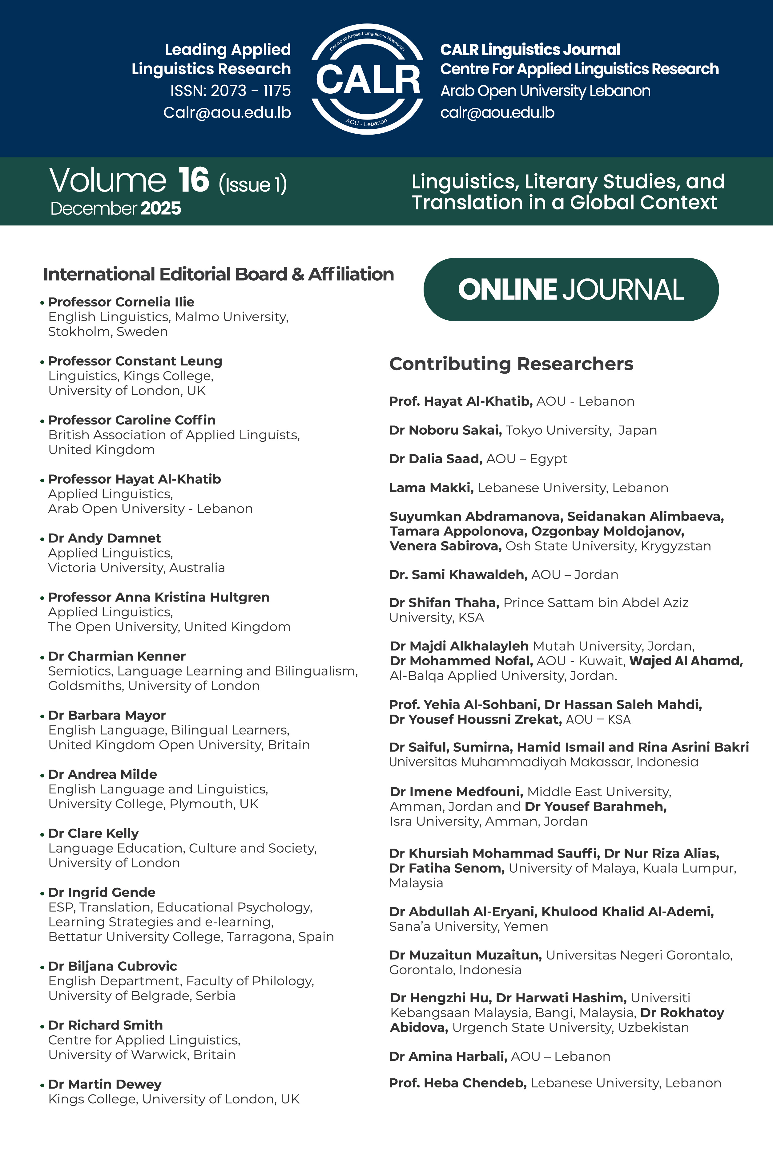 Assistant Professor of Linguistics, Isra University, Amman, Jordan
